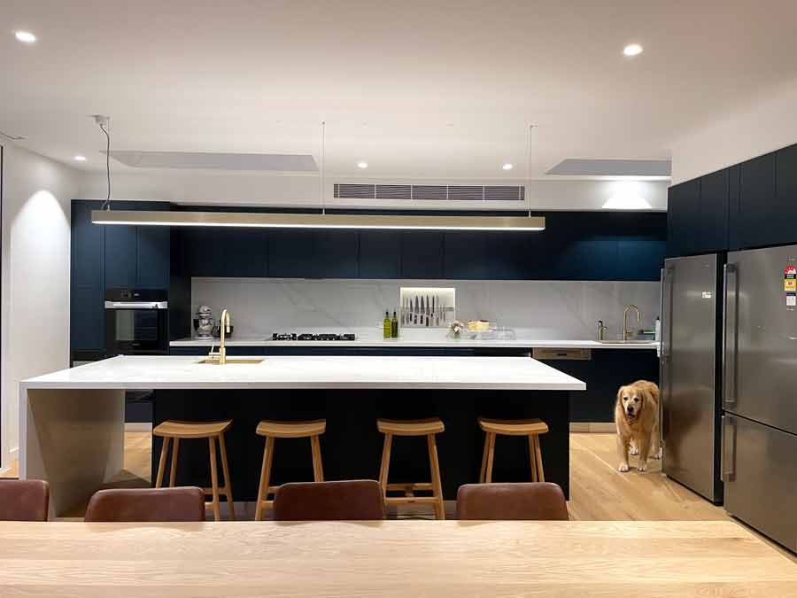 The thing that gets commented on the most is the choice of midnight blue for the cupboard colours. Many were dubious but everyone is a convert. I just couldn’t do white. Too blinding. I’d have to wear sunglasses in the kitchen!!