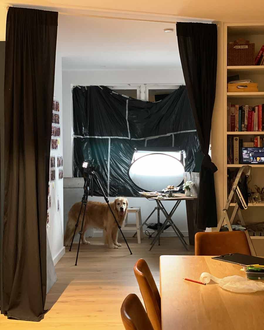 And here is my proper shoot studio (no garbage bags in sight, I actually have REAL blinds!). Once the cookbook photos are done and the new washing station in the work kitchen is completed, I plan to do all my work shooting in the studio.