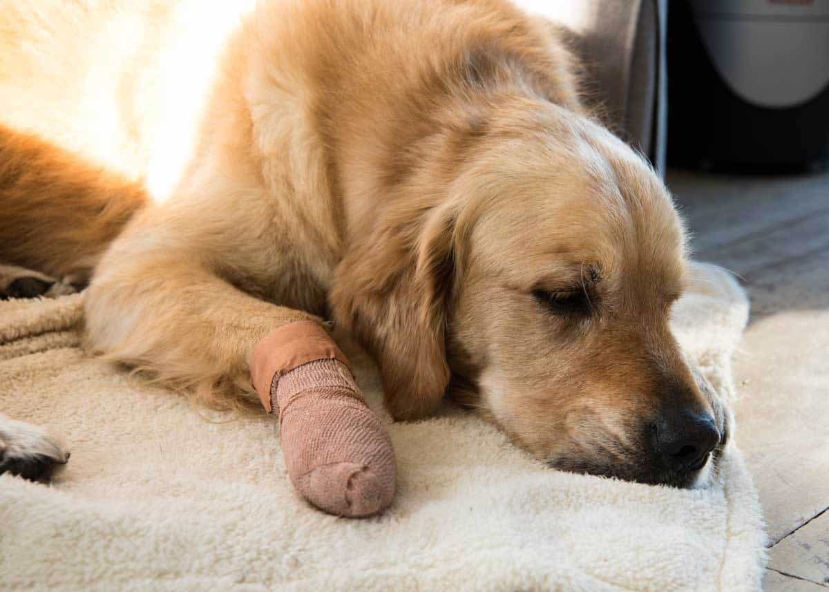 Dozer’s got a boo boo. i.e. Shredded his paw by tearing manically across a bed of oyster shells in pursuit of a pelican.