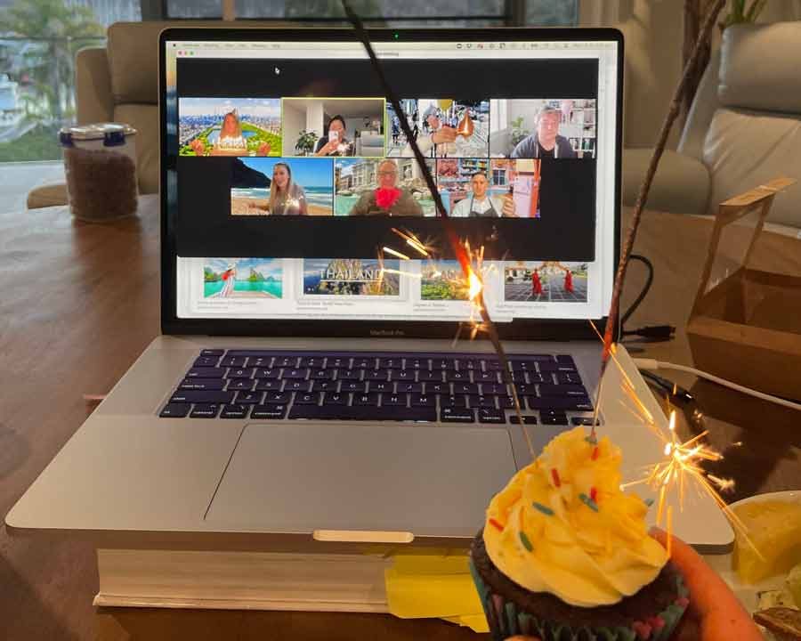 This is how we celebrate birthdays at Team RecipeTin during lockdown – with goodie bags delivered to each team member for a virtual Zoom birthday party!