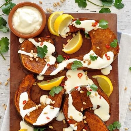 Roasted Pumpkin with Yogurt Sauce and Pine Nuts