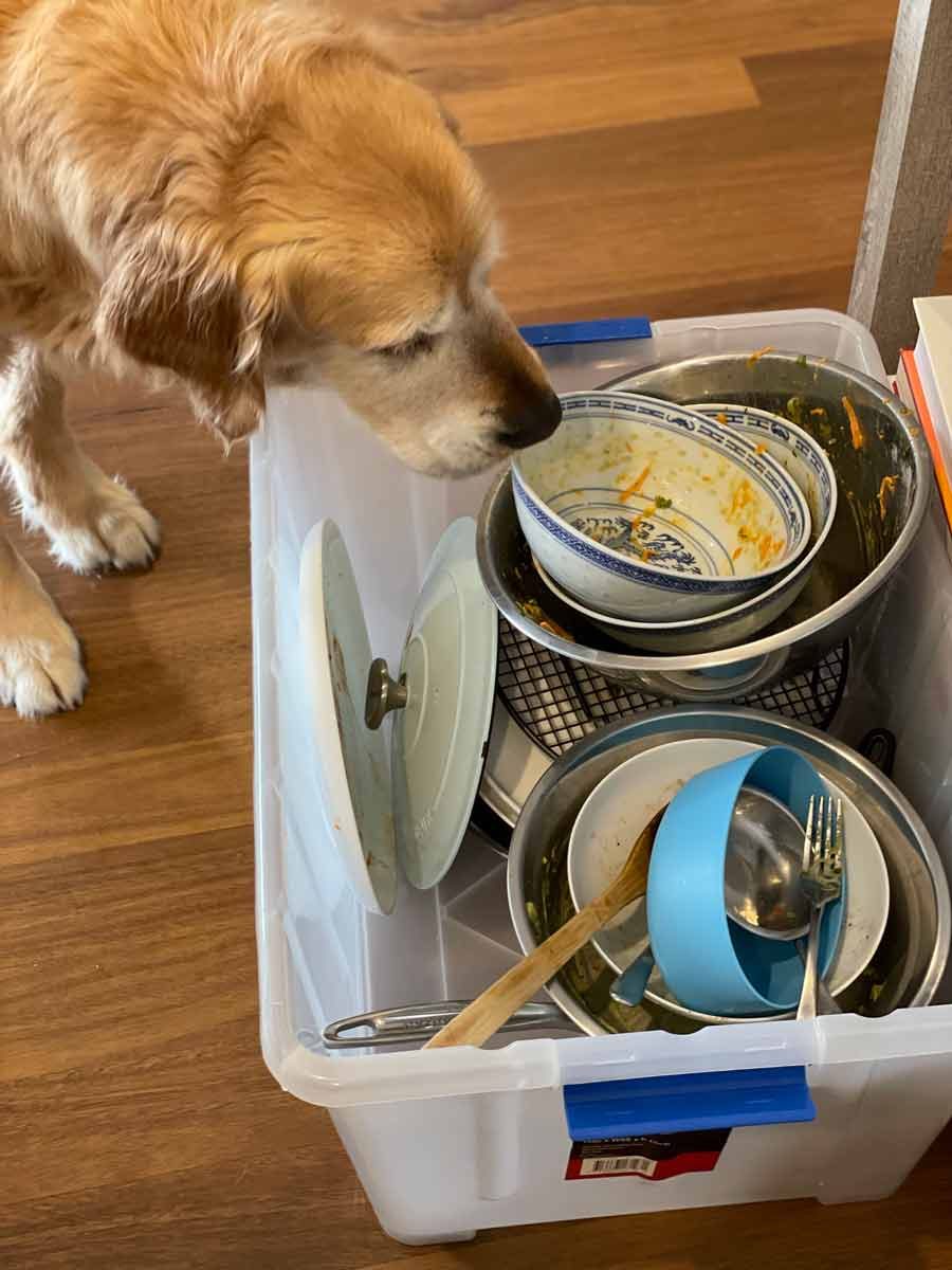 This is how I deal with dishes on big recipe development days for the cookbook – pile them into tubs to keep them out of the way then do giant loads at a time. The amount of dirty pots and pans we generate on big cook days is pretty phenomenal…!!!