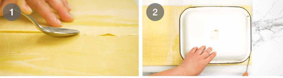 Puff pastry – Here in Australia, standard grocery-store puff pastry comes in 20cm/8″ sheets which are just a touch too small for most baking dishes and large pie dishes. So I just connect two sheets using egg whites (the yolks is used to brush the pastry to make it golden in the oven).
