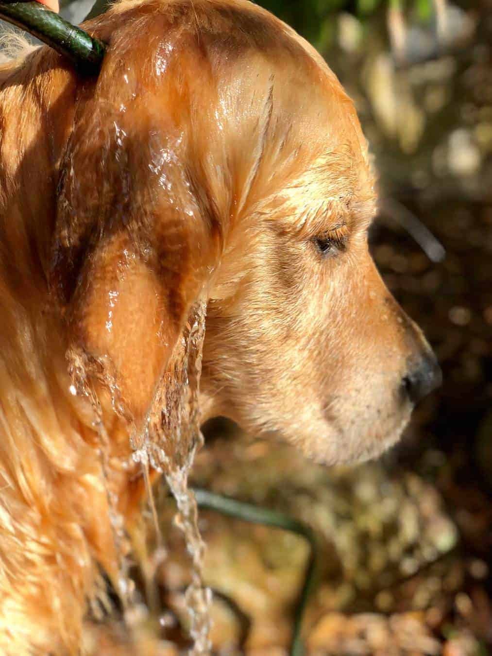 Miserable, sulky post-swim hose down. No feeling sorry for him! He just spent the last hour swimming and rolling in sand!!!