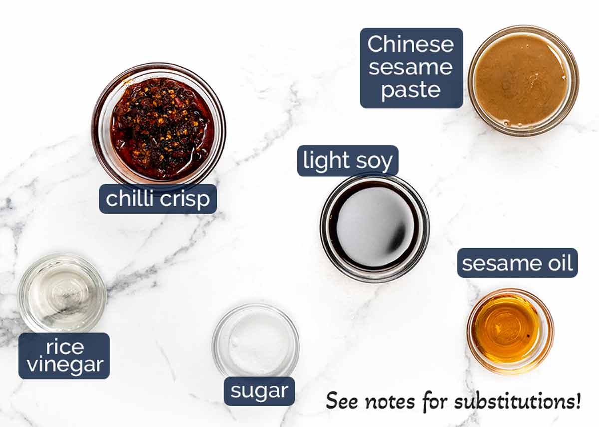 Chinese sesame paste (plenty of sub options!) – Tahini in steroids. Stronger sesame flavour! Find it in Asian stores and the Asian aisle of some large grocery stores.