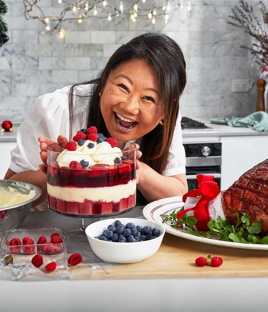 A menu built for gasps! A mighty prime rib, potato gratin topped with melty brie, oysters with a glittering pile of granita…but those pavlova bombs will steal the show and be whispered about for years to come!!