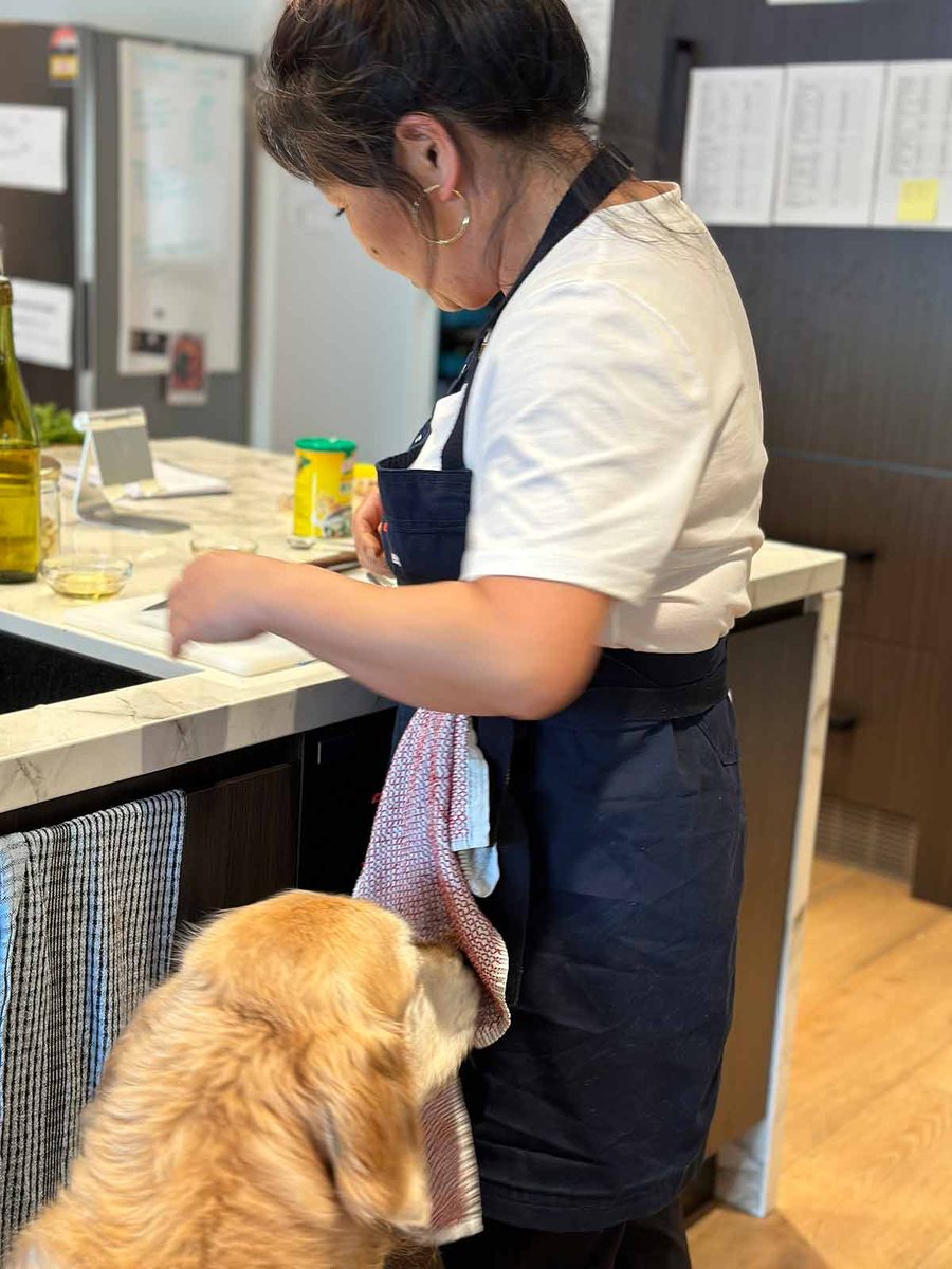 Love Pearl Barley but great intro to Farro. Love the new music too Nagi. Still have a smiley face from the Mudgee long lunch. Fab Day. Fab weekend. Love Dozer in the tea towel. Where else would he put his nose!