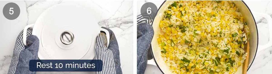 - Rest 10 minutes – Remove the pot from the stove and let it rest for 10 minutes with the lid on. This step is key, do not skip it! (Note 5)