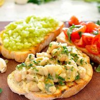 Transform a humble can of cannellini beans into a bruschetta topping with just a squeeze of lemon juice, a drizzle of olive oil and a sprinkle of parsley. Good value, creamy and so tasty, this is one of three bruschettas for the Trio of Bruschetta Spread.