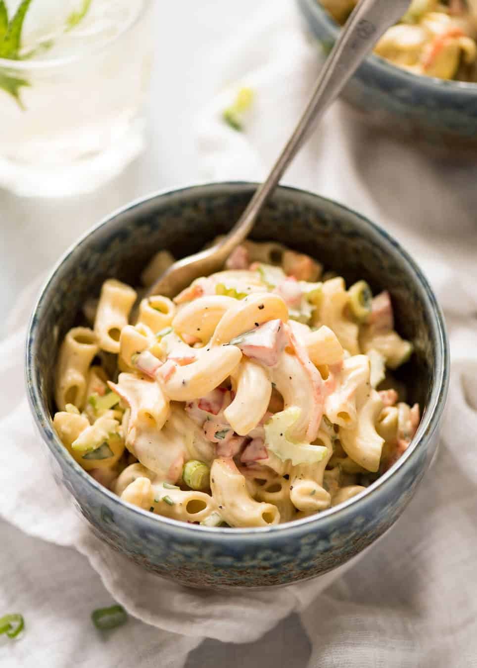 It’s difficult to imagine a summer with Macaroni Salad. Like Coleslaw, it’s a summertime staple. The pasta salad you keep in your fridge for a quick side for meals and to put in your lunchbox.