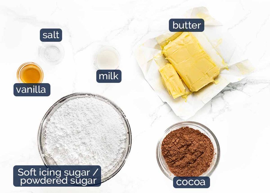 And here’s what you need for the chocolate buttercream frosting.