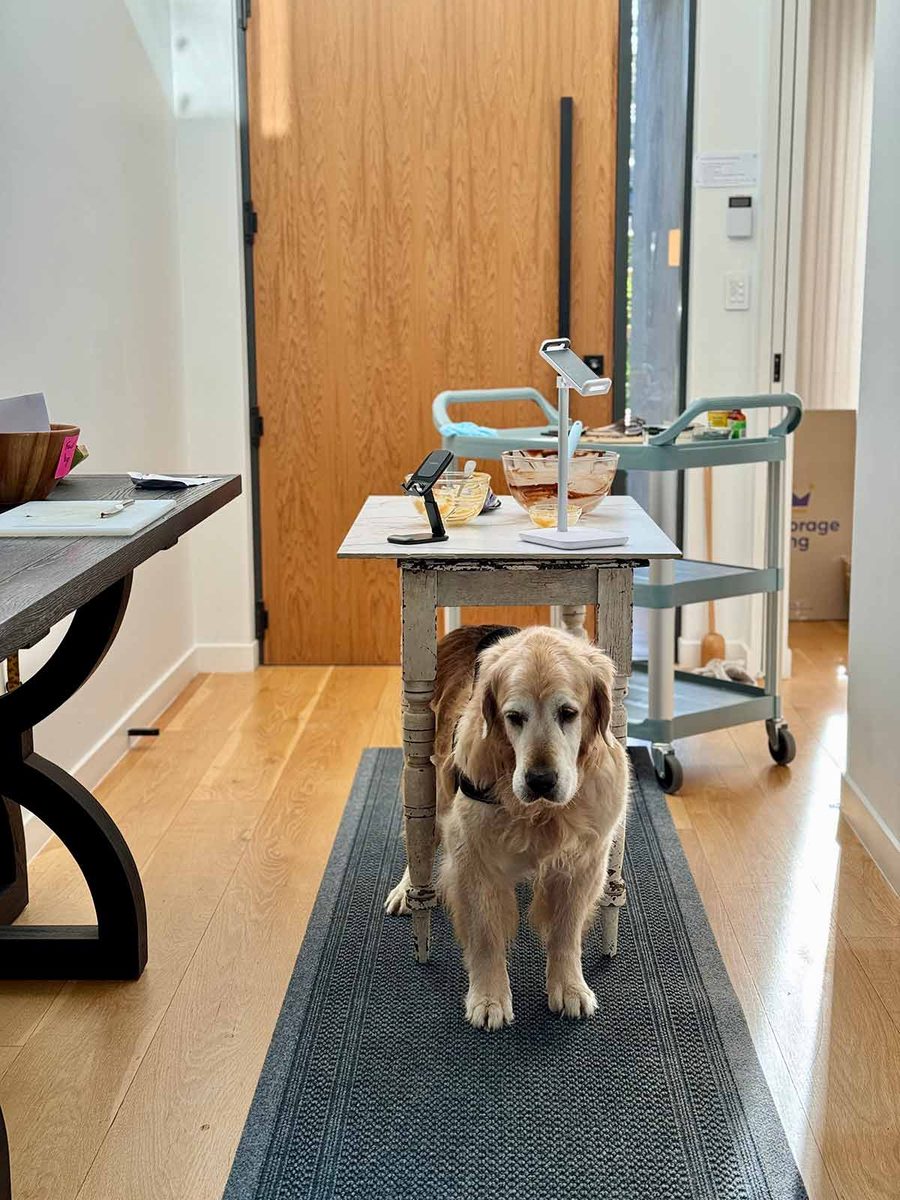 Got right into recipe filming the day after we moved in! Here we are filming an Instagram reel for Friday’s Peanut Butter Stuffed Brownies. If you’re wondering what on earth I’m doing making food in the hallway when there’s such a fabulous kitchen here – I’m chasing the light. 🙂