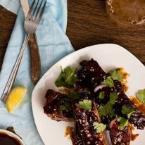 Deliciously sticky and moorish, these ribs are great for entertaining. Once you start, it’s hard to stop – make sure you provide plenty of nap- kins for your guests! The marinade for this recipe also goes great with chicken.