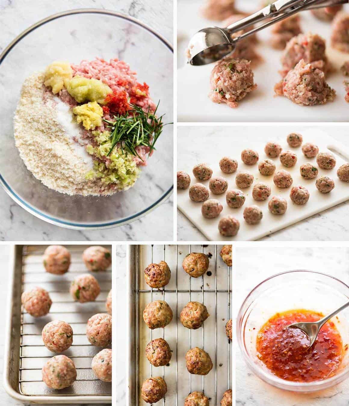 - Place Meatball ingredients in a bowl (except oil spray), mix well with your hands. Only use extra breadcrumbs if necessary โ sometimes, chicken mince can be quite wet. Scoop up 1 slightly heaped tablespoon and roll into a ball (about 3cm / 1.25โณ diameter). (Note 6 for my way)
