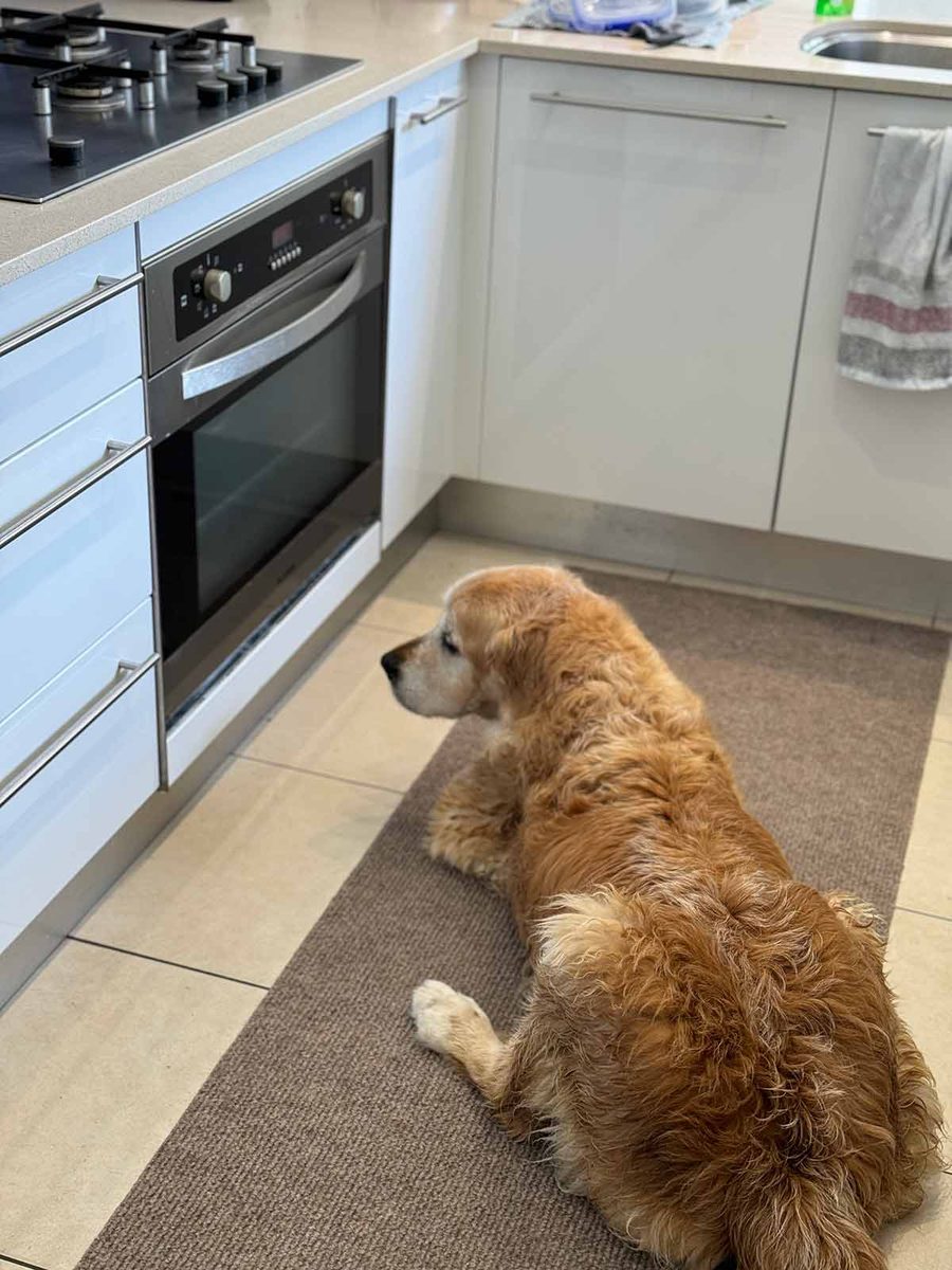 And here are a few more snaps of Dozer over the Easter break. Babysitting the slow roasted lamb: